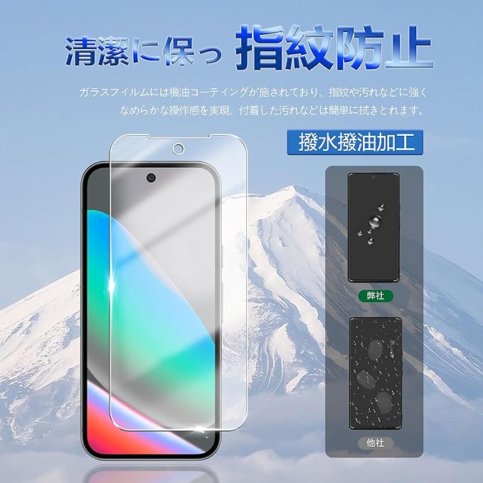 【指紋防止&超スムーズ操作 - ナノ撥油コーティング​】:特殊疎油加工で汗・油・化粧品などの付着を防止、サッと拭くだけで清潔を維持.タッチ感度を損なわず、指紋認証や画面操作もストレスフリー、ゲーム操作やスクロールが驚くほど滑らかに