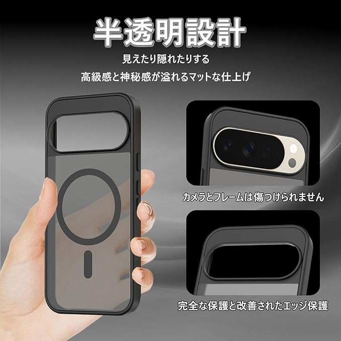 HKKAIS 対応 Google Pixel 10 Pro XL 用の ケース ワイヤレス充電 米軍MIL規格 MagSafe対応 耐衝撃 半透明 マット仕上げ 滑り止め 黄ばみ防止 指紋防止 (マットブラック)