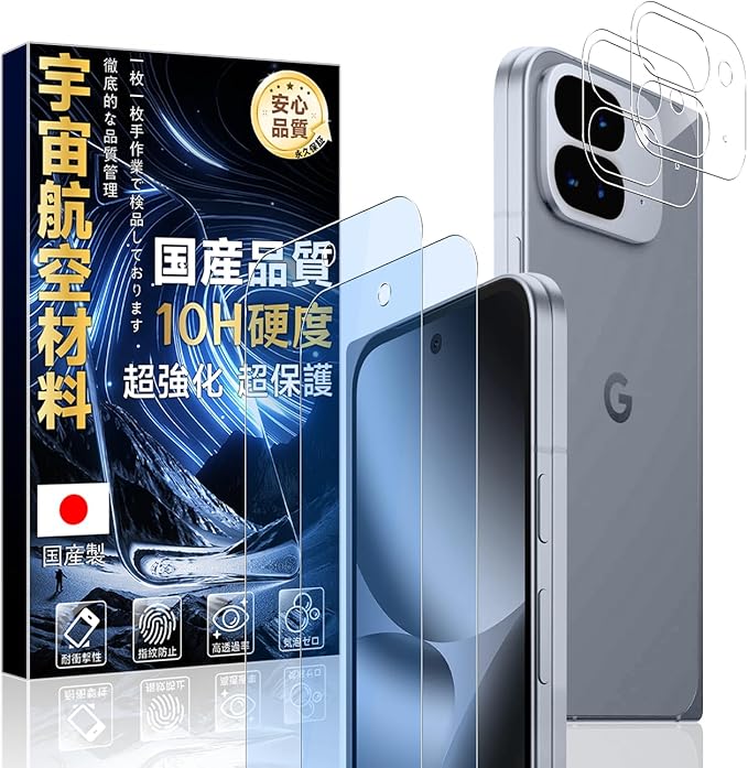 対応 Google Pixel 10 Pro Fold 用の ガラスフィルム ブルーライトカット (2枚) + レンズ保護フィルム(2枚) 【旭硝子素材製 硬度10H 】 グーグルピクセル 10 プロ Fold 保護フィルム 強化ガラス 耐衝撃 米軍MIL規格 指紋防止 自動吸着 気泡レス 【ブルーライトカット 93%】IC10LG10PF