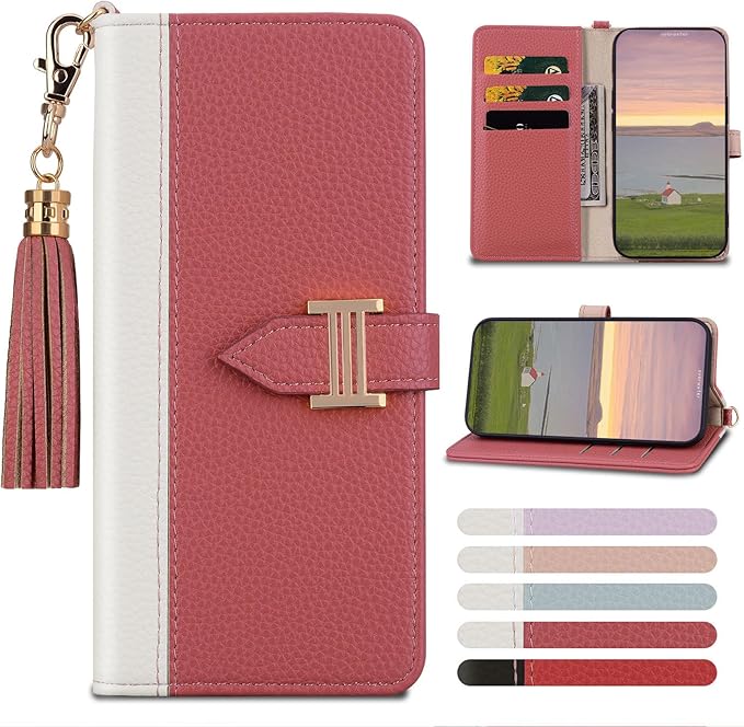 Yuotky for Google Pixel 10 / 10 pro ケース 手帳型 Pixel 9/9 Pro ケース 財布型 googleピクセル10 スマホケース グーグルピクセル10 カバー 2色パッチワーク pixel 10 pro カバー マグネット クラスプ付き カード入れ収納 スタンド機能 高級PUレザー 全面保護 (同色のペンダント付き) (ダークピンク)