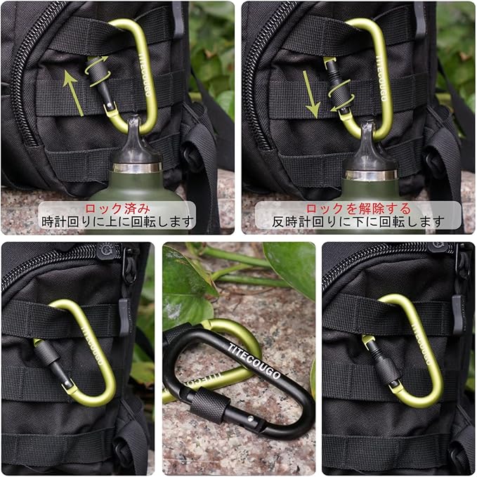 TITECOUGO アウトドア カラビナ アルミ Dフック ロック おしゃれ Dリング ネジロック