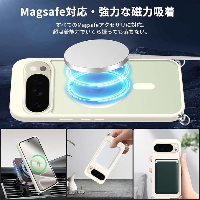 ZHIYIJIA for Google Pixel 10 / Pixel 10 Pro 用 ケース クリア ショルダー 半透明 TPU+PC ワイヤレス充電 アクリル背面 耐衝撃 マグネット搭載 ピクセル10/10pro ケース マグセーフ対応 耐久性 滑り止め 黄変防止(ホワイト)