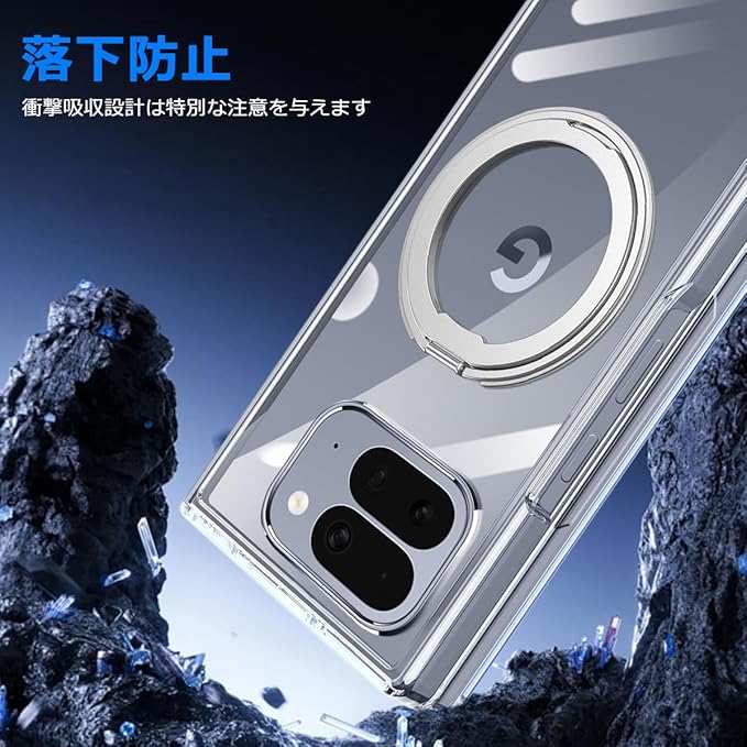 Google Pixel 10 Pro Fold ケース クリア 多機能360度回転スタンド マグネット搭載 角度調整 縦横両対応 グーグル ピクセル10 プロ フォールド カバー リング付き ケース 耐衝撃 TPU スマホケース 多機能 透明 軽量 薄型【クリア】