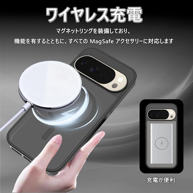 HKKAIS 対応 Google Pixel 10 Pro XL 用の ケース ワイヤレス充電 米軍MIL規格 MagSafe対応 耐衝撃 半透明 マット仕上げ 滑り止め 黄ばみ防止 指紋防止 (マットブラック)