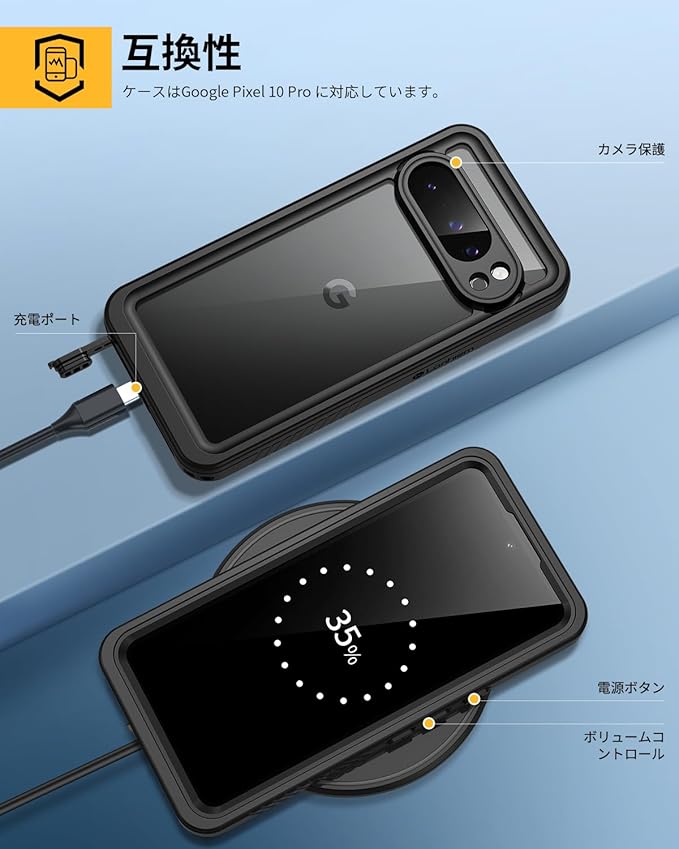 【簡単に装着・脱着】斬新な設計による簡単装着・脱着。高級感を損なわない一体感を実現、前面フレームと背面プレート分離した設計。薄型&軽量:ピクセル 10 プロ防水ケースを入れたまま、手持ちが良く、長く持っても手が疲れる感じもありません。握った感じも滑ることはなく、しっかり手に馴染みます。
