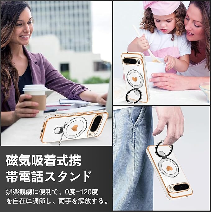 Google Pixel 10 / 10 Pro ケース MagSafe対応 リング スタンド機能 縦横両対応 ワイヤレス充電 レンズ保護 耐衝撃 携帯カバー グーグル ピクセル 10 pro カバー マグネット搭載 車載ホルダー マグセーフ対応 おしゃれ スリムケース ソフト シンプル(ホワイト)