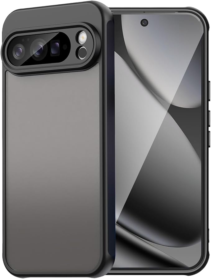 【TIFIYA】For Google Pixel 10 Pro XL 用 ケース 指紋防止 米軍MIL規格 PC+TPU素材 グーグルピクセル10 pro xl 対応 ケース 耐衝撃 2重構造 傷つけ防止 黄ばみなし 耐久性 ピクセル10 pro xl 保護カバー 半透明(ブラック)