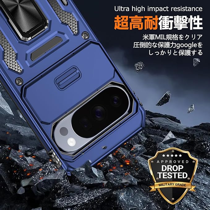 PNEWQNE 対応Google Pixel 10 Pro XL 用のケース リング付き 衝撃吸収 耐衝撃 スタンド機能 米軍MIL規格 グーグル ピクセル10 pro xl 用のケース 全面保護 360 回転 滑り落ちにくい 人気 おしゃれ 携帯カバー 青 WY100-24