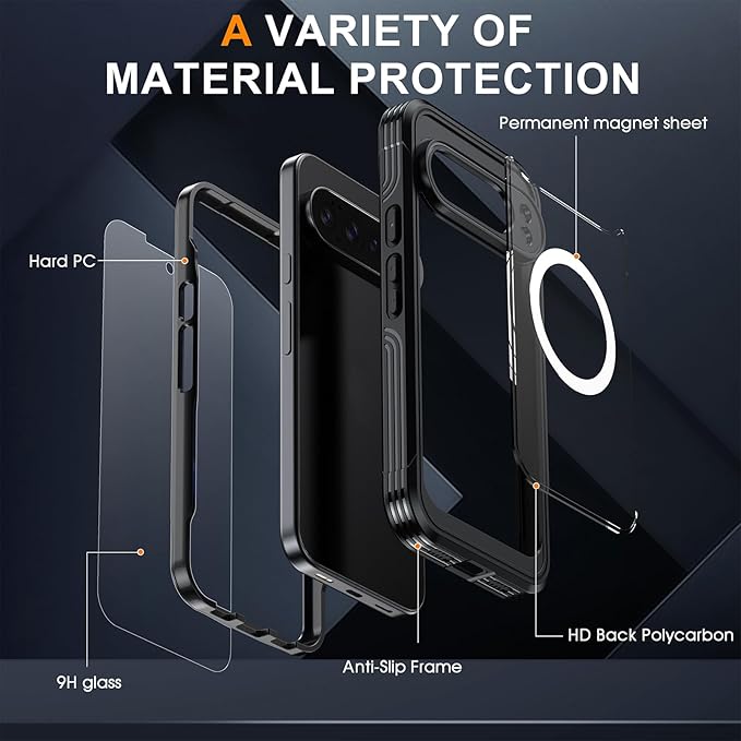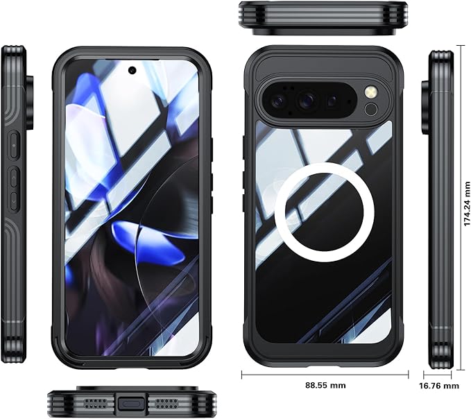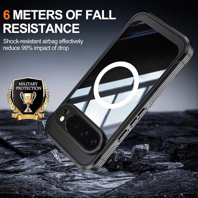 Lafunda Google Pixel 10 Pro XL 用 ケース 360度全面保護 MagSafe対応 透明 スマホカバー 角保護強化 ガラスフィルム付き アウトドア 耐衝撃 黄ばみなし傷つけ防止 落下防止 ワイヤレス充電対応 Google Pixel 10 Pro XL 用 マグネットスマホケース ブラック