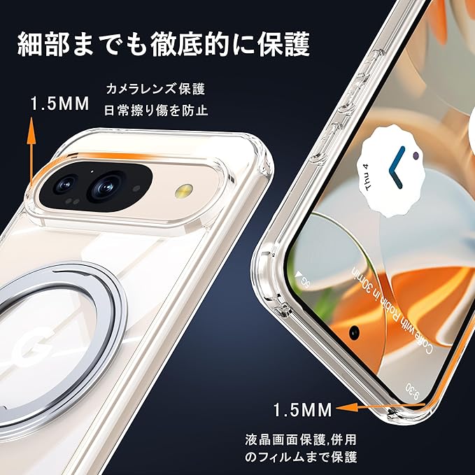 Google Pixel 9 / Pixel 9 Pro 用 ケース Magsafe対応 ピクセル9 プロ カバー 360 回転スタンド Uovon スマホケース 携帯ケース ワイヤレス充電 車載ホルダー 対応 ストラップ穴付き 透明 指紋防止 黄变防止 ・ クリア