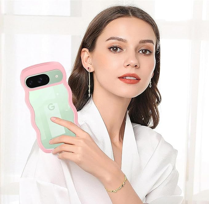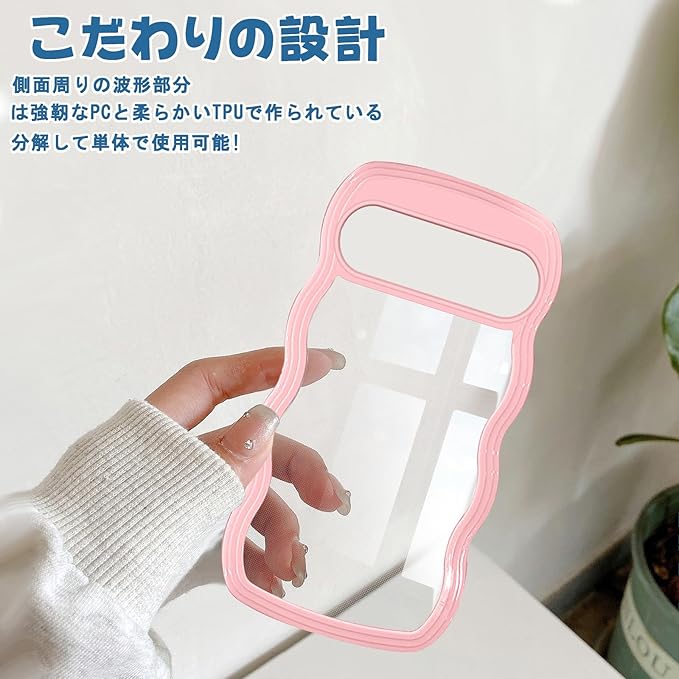 Google Pixel 9 用 ケース Google Pixel 9 Pro 用 ケース クリア ウェーブ ピクセル9 プロ 用 カバー 透明 韓国 波状エッジ ピクセル9 用 スマホケース ピンク