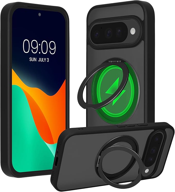 商品タイトル(最適化済み)kalibri スタンドリング付きスマホケース - Google Pixel 10 / Pixel 10 Pro 対応 360 回転式キックスタンド ハードケース MagSafe対応 - 黒色/半透明
