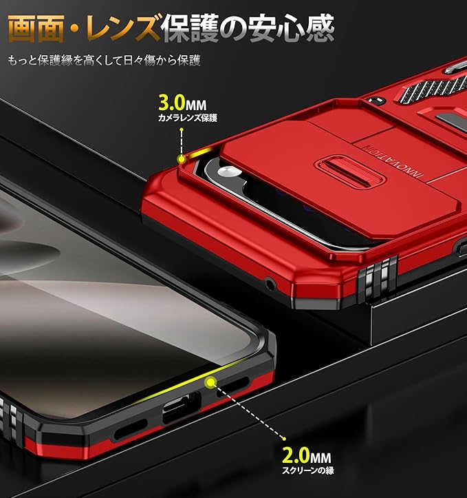 機種対応:対応 Google Pixel 10 Pro XL のデザインです、他用の機器と互換性がない。二重構造:PC(ポリカーボネート)バック+TPU(シリコン)バンパー+金属ホールリング、内側TPU素材とハードPCフレームで制作するため、耐久性に優れた、外部からの衝撃を内部に吸収されて、側に滑り止めの設計で、落下を防止にできます。全カバー式の音量ボタン&スイッチボタンの設計は、ぴったり合うだけではなく、操作しやすいよう最も適したサイズに作られています。スライド式カメラカバー:スライドカバーはより滑らかに開閉できるようになりました。カメラレンズもスライド式カバーで砂・埃などの侵入を防ぎます。ケースのエッジは液晶画面より高さの設計で、液晶画面を保護することができます。スタンド機能:スタンドの機能はスマホを横に放置できて、長時間の動画視聴でも手に持つ必要がなく、超らくらく動画視聴が可能です。長時間での新幹線、飛行機の中での暇つぶしに最適ですよね。携帯ケースと指リングは一体型な設計で複雑な取り付けがなく、落下しにくく、擦り傷、ぶつかり合う、落下からスマートフォンを保護することができ、手に持って持ち運ぶことも安全&便利です。車載の磁気吸盤にしっかりと吸着することができ、運転中に携帯電話のナビゲーションなどの機能をより便利に使用することができます。(ご注意:ケースの背面は金属製部分がありますので、ワイヤレスチャージャーを使うことときにカバーケースを取り外してください。USB lightning ケーブルで充電するならOKです。)