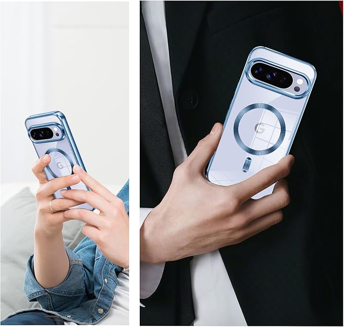 Google Pixel 10/Pixel 10 Pro 用ケース Magnetic対応 ワイヤレス充電 軽薄型 TPU ソフト グーグル ピクセル 10/10 pro用スマホケース マグネット搭載 耐衝撃 米軍MIL規格取得 黄変防止 耐久性 ストラップ穴付き おしゃれ 携帯カバー 青 D83-15 CP