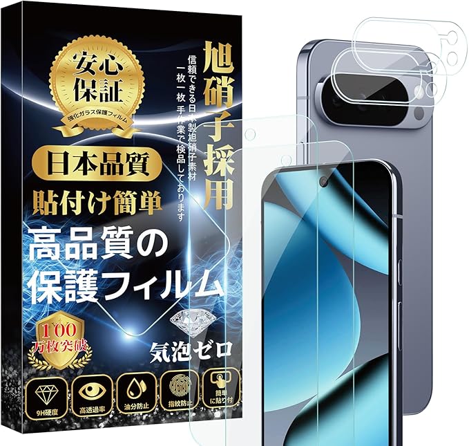対応 Google Pixel10 Pro フィルム (2枚) + Google Pixel10 Pro カメラ保護フィルム (2枚) 指紋認証対応 硬度9H 高感度 高透過率 簡単貼り付け 気泡ゼロ 指紋防止 飛散防止 ピクセル10 Pro保護フィルム+ピクセル10 Proレンズ保護 フィルム