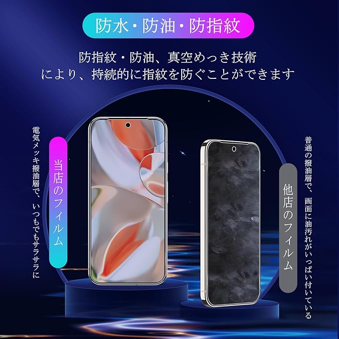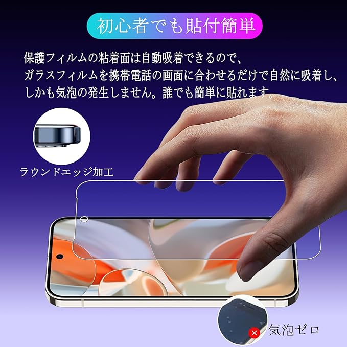 特徴 ①業界最高硬度9H、耐衝撃 ②目の疲れ軽減 ③スクラッチ防止、飛散防止④自動吸着、貼り付け簡単⑤気泡のない防止⑥撥水撥油、指紋防止⑦超高タッチ敏感度⑧超高透明感⑨ケースに干渉しにくいサイズ⑩超耐久