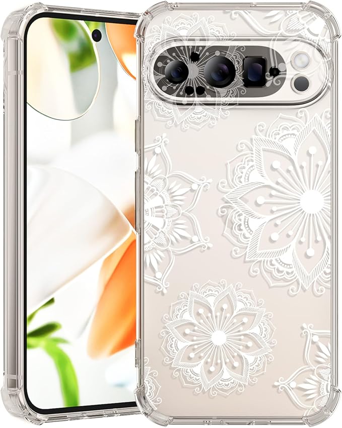Google Pixel 9 PRO XL 用 ケース耐衝撃 おしゃれ クリア透明 スリム 薄型 tpu 指紋防止 米軍MIL規格取得 Pixel 9 PRO XL カバー 衝撃吸収 滑り止め カメラ保護 携帯カバー 黄変防止 防塵 かわいい 携帯カバー 花 D636-pixel 9pxl-01