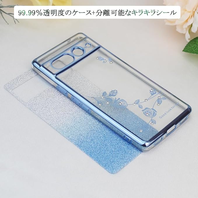 JOOBOY スマホケース 対応 Google Pixel 7Pro ケース クリア キラキラ メッキ加工 花柄 ソフトケース TPU 薄型 おしゃれ かわいい 衝撃吸収 ブランド グーグル ピクセル 7プロ カバー(Google Pixel 7Pro, キラキラ-ブルー)