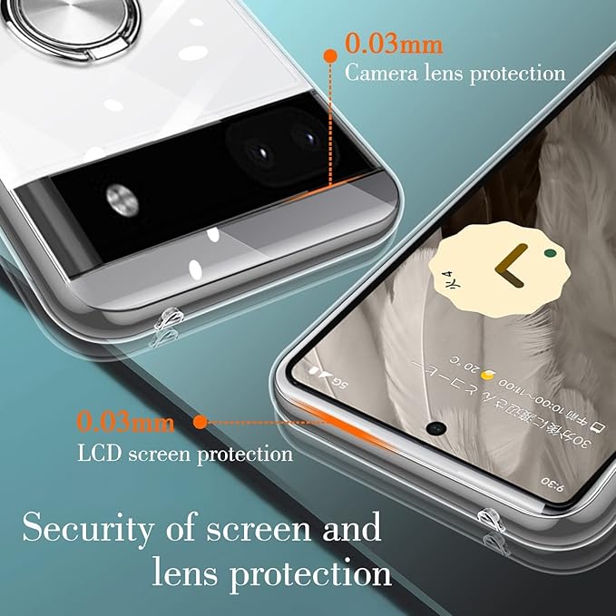 Loligals ケース クリア 用の Google Pixel7 Pro 用 ケース リング付き クリア ピクセル 7Pro 透明 リング 全透明 スマホケース 極薄 カバー 衝撃 吸収 柔軟 ストラップホール付き スタンド機能 車載ホルダー 滑り止め 落下防止