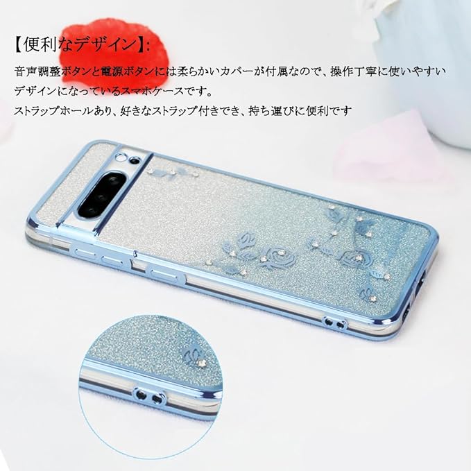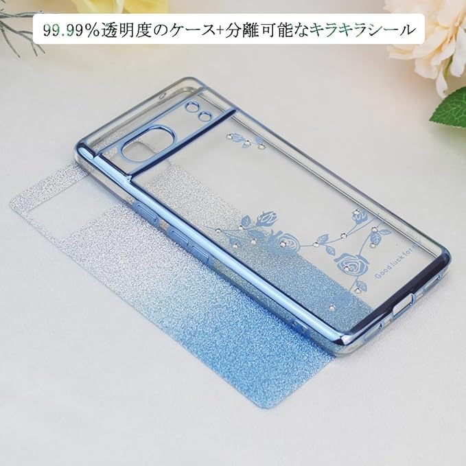 JOOBOY スマホケース 対応 Google Pixel 8Pro 用 ケース リング付き クリア キラキラ メッキ加工 花柄 ソフトケース TPU 薄型 おしゃれ かわいい 衝撃吸収 ブランド グーグル ピクセル 8プロ カバー (ブルー)