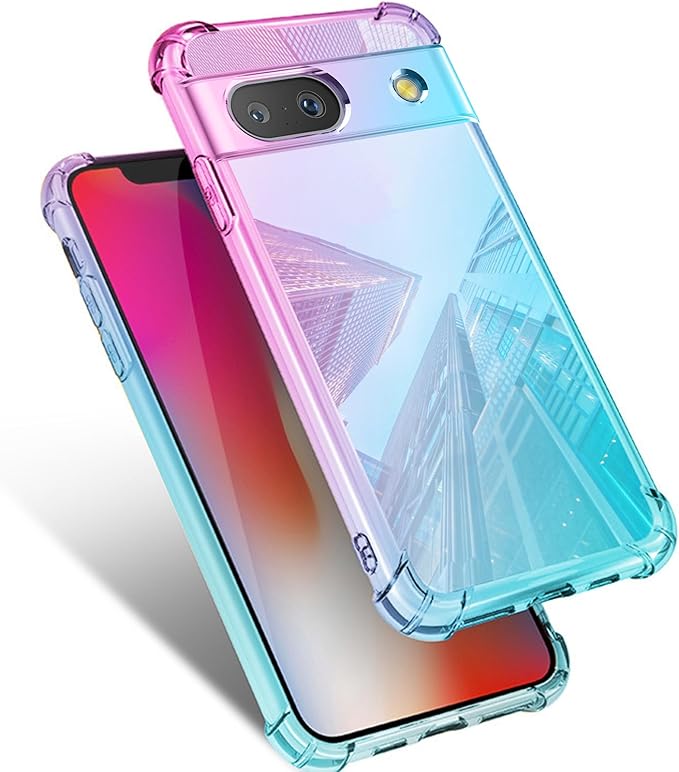Google Pixel 7A 用 ケース クリア Pixel 7Aカバー 耐衝撃 薄型 グラデーション 透明 TPUバンパー 薄型 軽量 取り出し易い 全面保護 おしゃれ 擦り傷防止 指紋防止 ストラップホール付き スリム ピクセル 7a プロ カバー ピンク/グリーン MJJ-1044-89-02