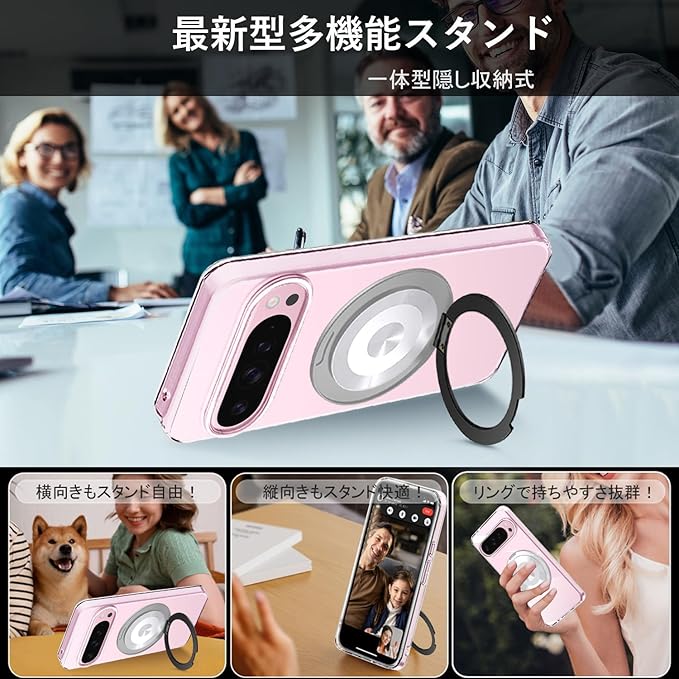 Google Pixel 9 Pro ケース クリア 360 回転スタンド MagSafe対応 ワイアレス充電対応 耐衝撃 ピクセル 9pro カバー 軽量 薄型 人気 Pixel9Pro スマホケース 透明 TPU + PC 車載ホルダー対応 (クリア)