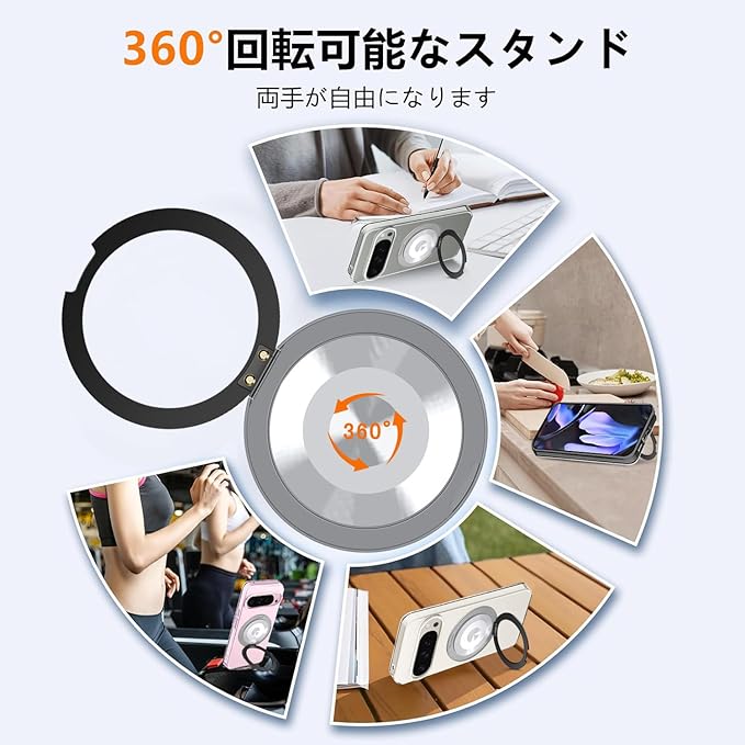 【スタンド機能、両手解放、自由満喫】多機能マジックスタンドは、折りたたんでグルーブに隠して収納させることができます。動画視聴、ビデオ通話、ゲーム、リモート会議、作業参照、ヨガ、オンライン授業、無限なシーンにスマホを活用出来、スマホに新しいライフスタイルを与えます。