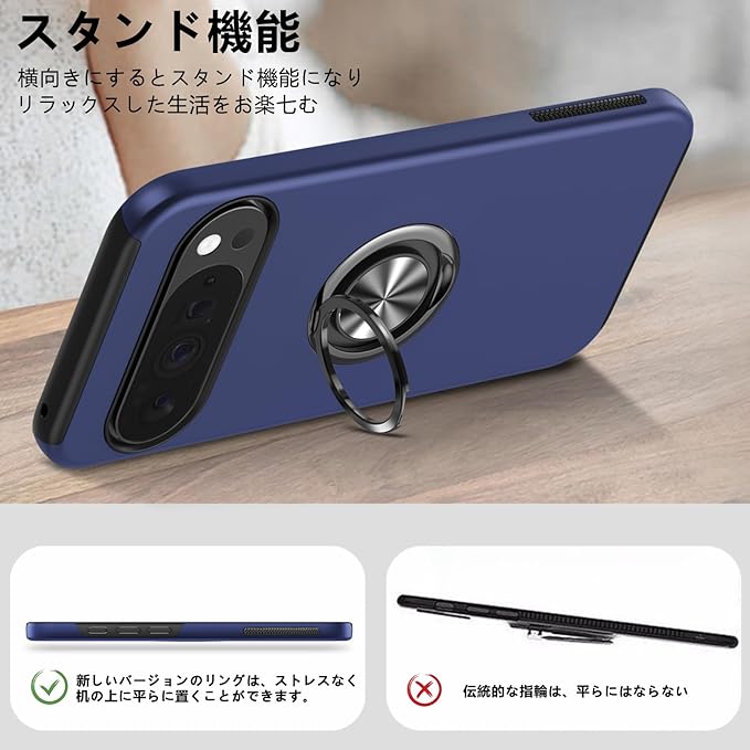 Tgaoleyd 対応 Google Pixel 10 Pro XL 用のケース リング付き 耐衝撃 tpu フルプロテクトデザイン スマホカバー スタンド機能 グーグル ピクセル10 pro xl 用のケース 全面保護 擦り傷防止 落下防止 米軍MIL規格 車載ホルダー対応 取り出し易い オシャレ 人気 携帯カバー 青 D-A09-52