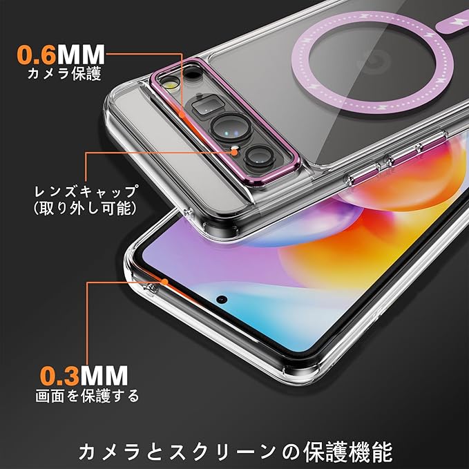 Google Pixel 8 Pro ケース クリア magsafe 充電対応 2重構造 ストラップホール付き カメラ保護 薄型 耐衝撃 透明 黄変防止 マグセーフ カバー (Pixel 8 Pro, ピンク)