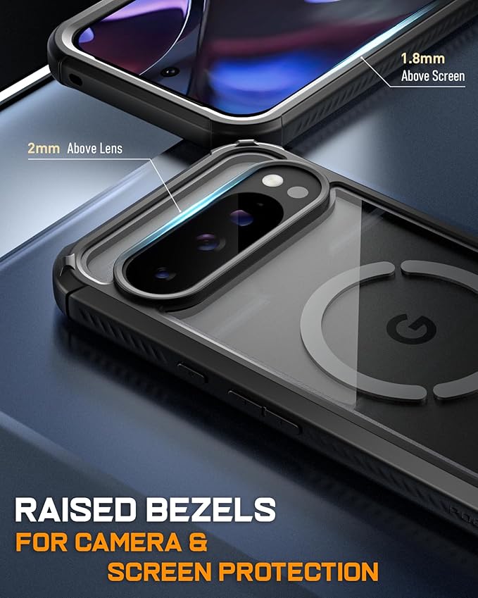 [Google Pixel 9 Pro XL用ケース] - 前面のハードフレームの縁と角が特別に盛り上がっており、落下からしっかりと保護し、画面を安全に保ちます。