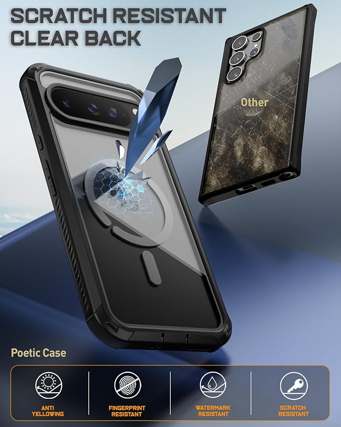 Poetic Guardian MagProケース Google Pixel 9 Pro XL 5G用 [MagSafe&指紋ID対応]、[フロントフレーム2枚]フルボディ耐衝撃クリアカバー、スクリーンプロテクター内蔵、ブラック/クリア