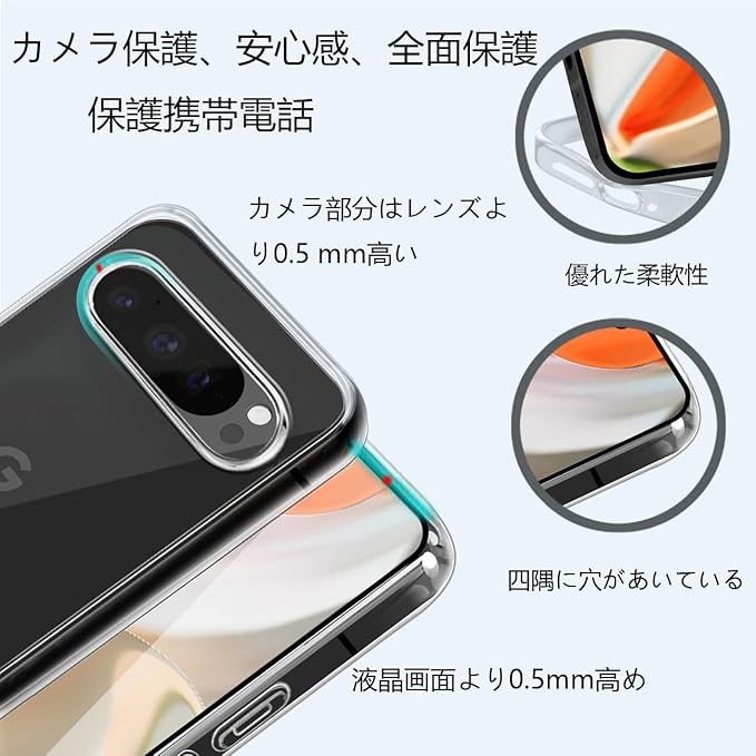 【対応機種】Google Pixel9 Pro XL用用の TPU耐衝撃ケース。それぞれ違う角度でコンクリートに落下させても本体は綺麗に無傷。TPU素材の変形しにくい性質と優れた耐久性で長くご愛用いただけます、保護はより周到である。※ご注意:お買い求めの機種を確認してからご購入をお願いします。