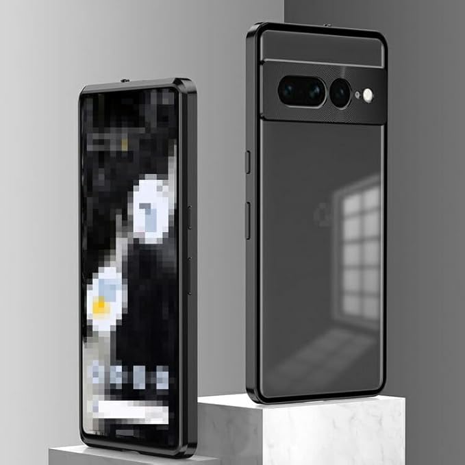 【Fotee】Pixel9 Pro 用バンパー ケース アルミバンパー かっこいい クリア 半透明 マット仕様 背面パネル (アクリル) カメラレンズカバー付き (強化ガラス) グーグル ピクセル9 プロ XL スマホケース スマホカバー (ブラック, Google Pixel 9 Pro)