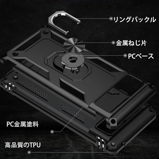 TMUJWS Google Pixel 7 Pro 用ケース リング 耐衝撃 衝撃吸収 傷防止 全面保護 カメラ保護 スタンド付き TPU+PCバンパー 指紋防止対策 グーグルピクセル7 pro ケース 6.7インチ 二重構造 360度回転 防塵 車載ホルダー対応 黄変防止 米軍MIL規格 軽量 薄型 耐傷性 滑り止め 人気 携帯カバー 黒 MZ61-144