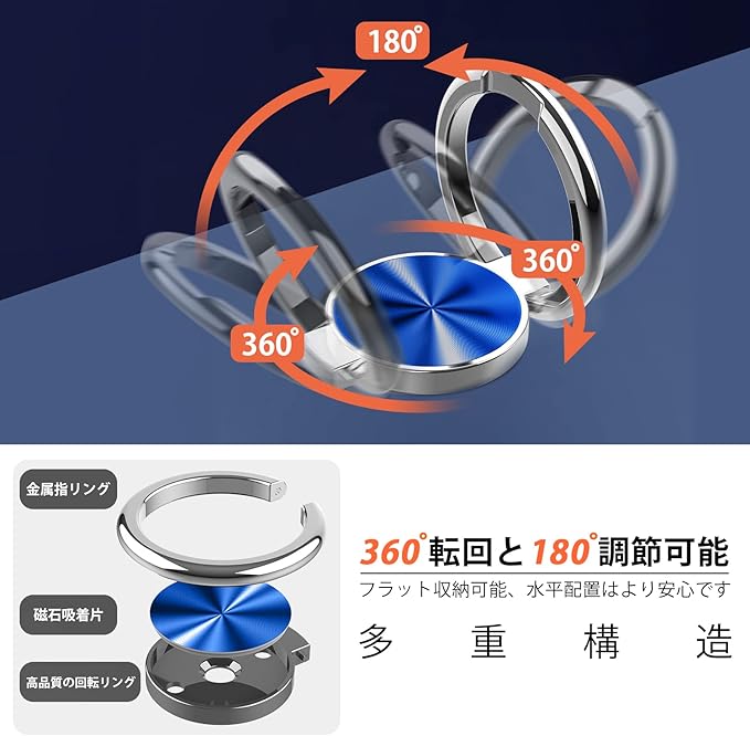 【リング付き・スタンド機能】後ろで嵌め込み式リング付き、伝統的なリングと比較して、アイフォーンの水平安定性を維持することができます。ケースを横向きにするとスタンド機能になり、360度回転と120度調節可能です。マグネット対応金属板採用し、車載ホルダーに強く吸着することもできます。