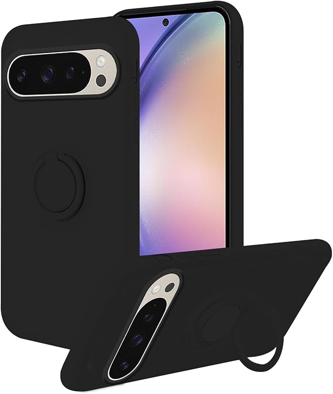 対応機種Google Pixel 9 Pro XLケース 液体シリコン リング付きトフォン保護カバー。