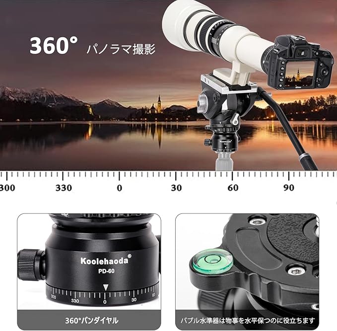 360度水平回転の三脚レベリングヘッド。360度回転のパノラマ撮影に使用でき、360度のパノラマ全体を撮影できます。 屋外の旅行写真家にとって絶対に不可欠です。