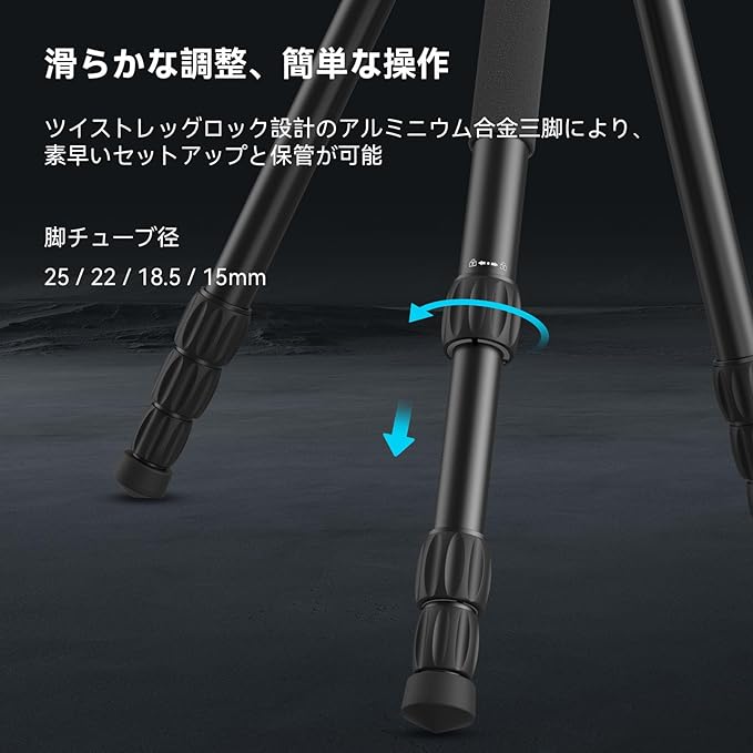 【調整可能な三脚】ノブロック付きの4セクションコラムレッグにより、作業高さを16.5インチから72インチまで数秒で調整できます。 16.5インチの折りたたみサイズは、屋外の写真撮影のためにどこにでも簡単に持ち運べ、時間を節約し、撮影を楽しむことに集中できます。最大15kg(三脚)、3kg(フルード雲台)までのデバイスをサポートできます。