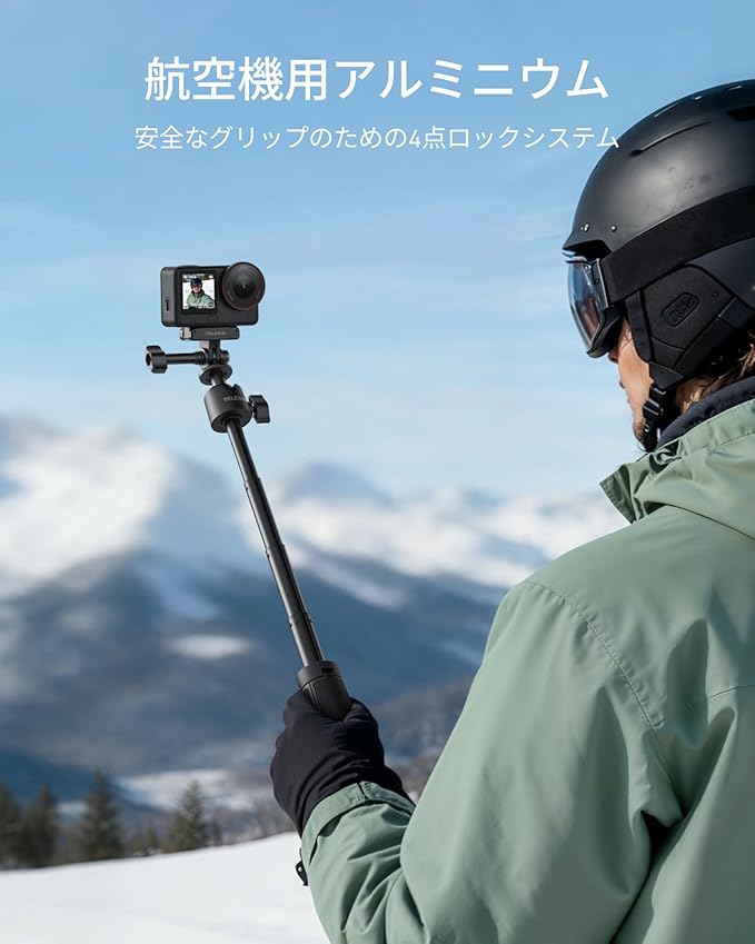 TELESIN GoPro/DJI Action/Insta360 用 ミニ延長ロッド 三脚マウント 46cm自撮り棒 アクションカメラアクセサリー 360 回転 縦撮り対応 一脚 卓上三脚 軽量 セルカ棒 折りたたみ 4段伸縮 vlog撮影 小型で持ち運びに便利 DJI Osmo Action 6/5 Pro/4/3 Insta 360 Ace Pro 2/ Ace Pro アクセサリーに対応
