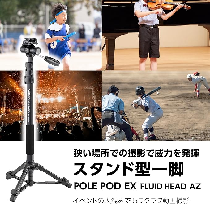 狭い場所や人が多くて三脚がセッティングできない状況でも威力を発揮する「ポールポッドシリーズ」。