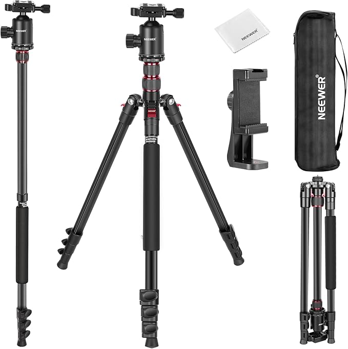 NEEWER カメラ三脚一脚 197cm ビデオ三脚 アルミ製 コンパクト 軽量 トラベルスタンド 旅行三脚 折りたたみ式 ポータブル 撮影用三脚 ボールヘッド/QRプレート/バッグ/スマホホルダー/クリーニングクロス付き コンパチブル iPhone ビデオ録画用 耐荷重15.4kg TP77