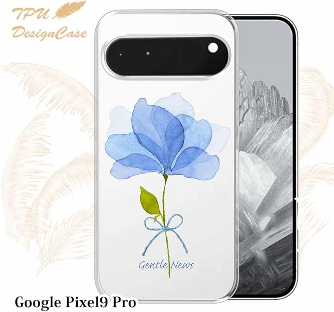 AnglersLife ソフトケース TPUケース Google Pixel 9 Pro クリアケース グーグル ピクセル9 Pro ケース 花柄 青い花 嬉しいニュース