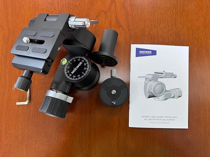 NEEWER 2ウェイギア三脚雲台 2軸パンチルトヘッド アルミ合金製 ミリ単位微調整 360 パノラマ Arca型QRプレート付き DSLRカメラ用 ラージ&ファインデュアルモード 最大荷重6kg TH14