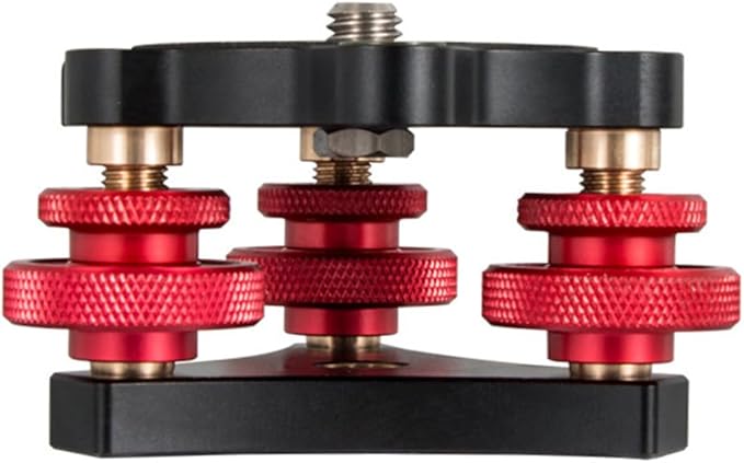 3 つの微調整ノブにより、水平方向に最大 +/- 5 度の調整が可能で、滑り止めの耐摩耗性ゴム製パッドとロック リング設計のダイヤルにより、カメラが完全に水平になり、安定した撮影が可能になります。