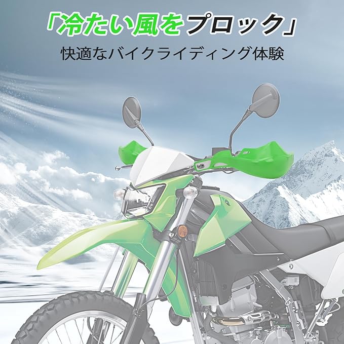 【防風・防寒効果】 ハンドガードを装着することで、直接的な風の影響を軽減し、寒い季節のライディングをより快適にします。