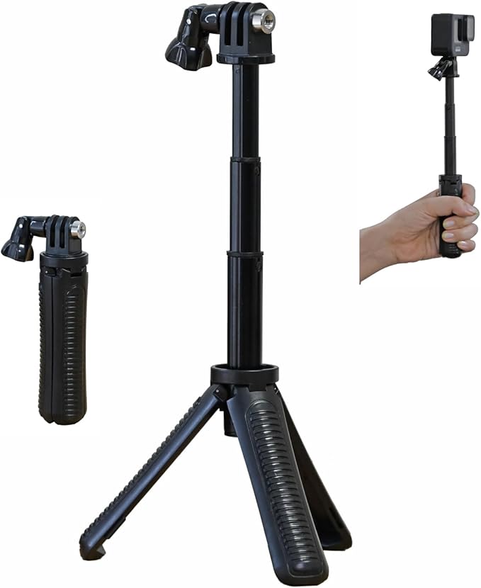 【三脚・一脚・グリップの3WAY仕様】脚を開けば卓上三脚、センターポールを伸ばせば自撮り棒・一脚として使用可能。さらに、撮影時のハンドグリップとしても活躍します。コンパクトながら、握りやすい形状の脚部とラバー製の滑り止めにより、しっかりとしたホールド感を実現。