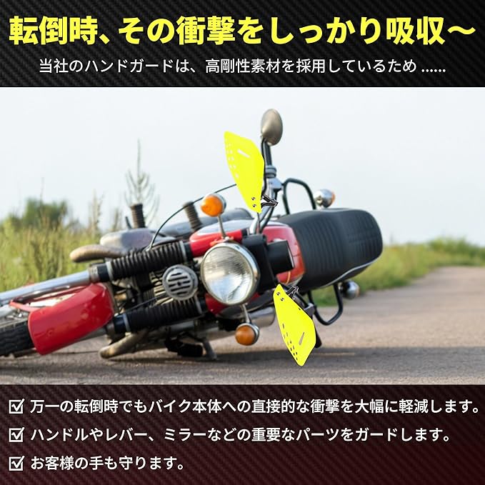 ナックルガード 汎用 バイク ナックルバイザー スクーター用 ハンドガード バイク ハンドガード 高耐久性 ハンドルカバー 風防 防寒 防雨 防護 飛び石避け 黄色 1セット