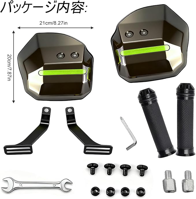 【セット内容】ナックルガート 2点 ネジ 4個 ネジ留め 4個 プレート 2枚 固定用プレート 2枚 アルミ合金ハンドルバー専用ハンドルx2枚 扳手 1枚 ドライバー 1枚,ハンドルのサイズ:14 * 3.7センチメートル/ 5.5 * 1.52インチ。