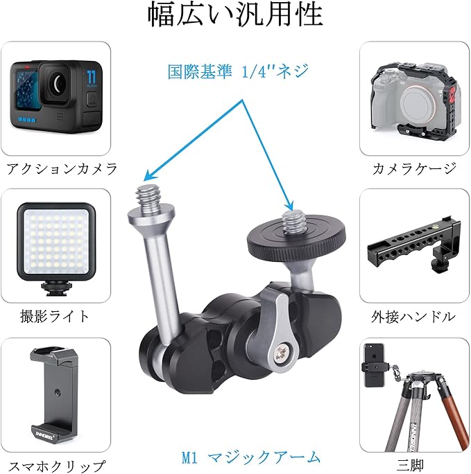 INNOREL マジックアーム 関節式アーム 3kg耐荷重 アルミ合金 1/4”&3/8”ネジ スマホ/モニターなど用アーム M1