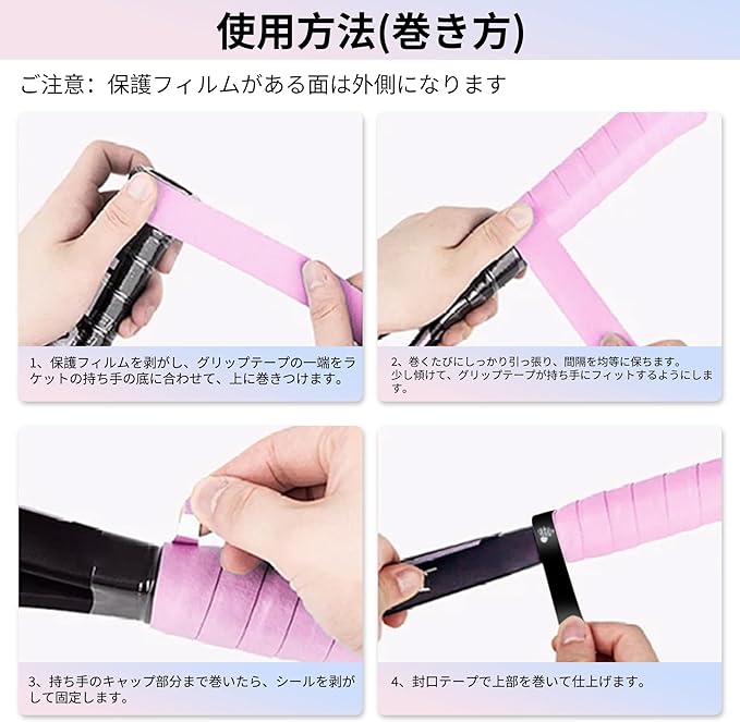 テニス、バドミントンなどのラケットスポーツに適した多目的アクセサリーで、オーバーグリップや交換テープとしても使用できます。さまざまなスポーツや機器のニーズに柔軟に対応します。